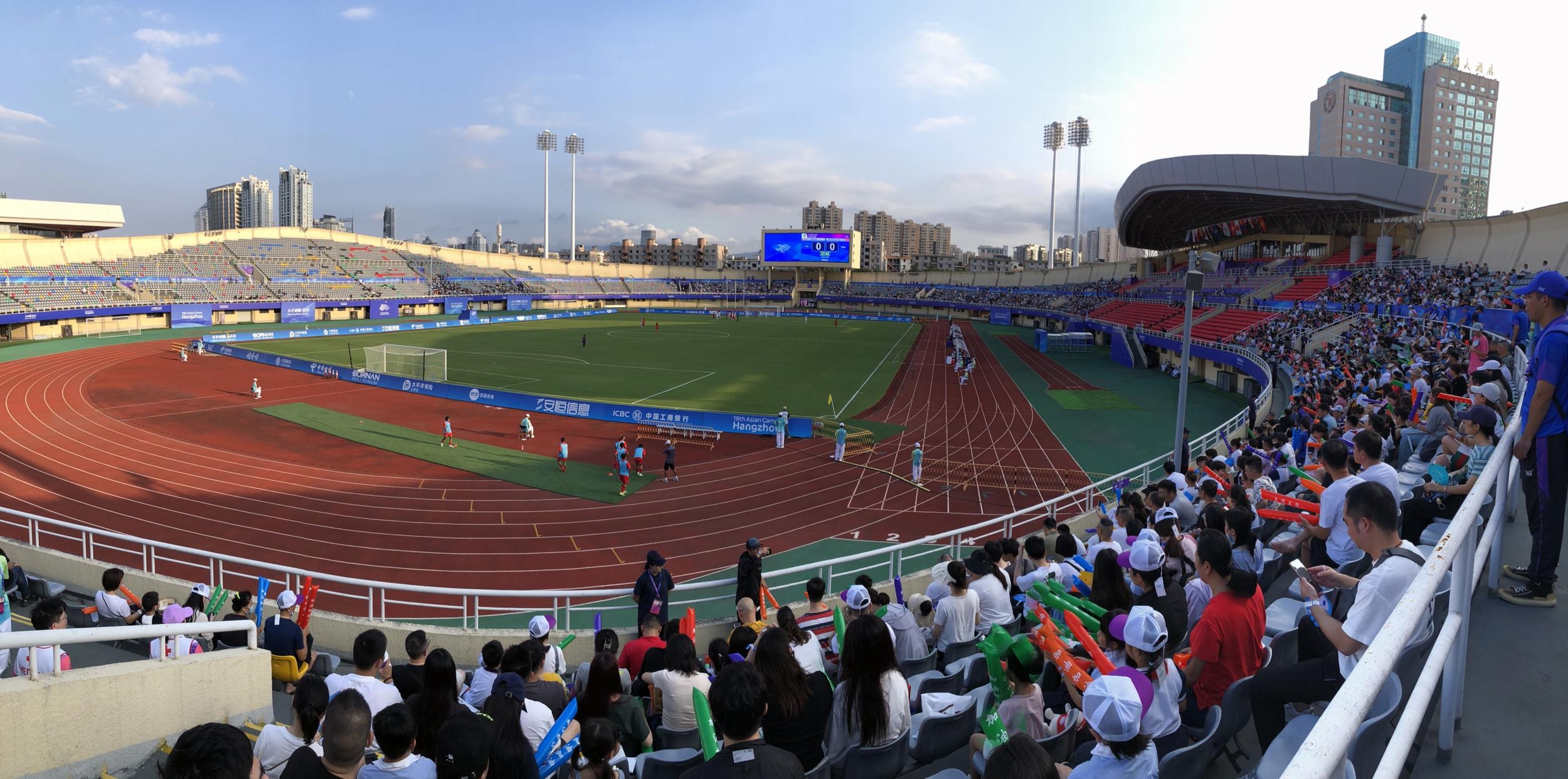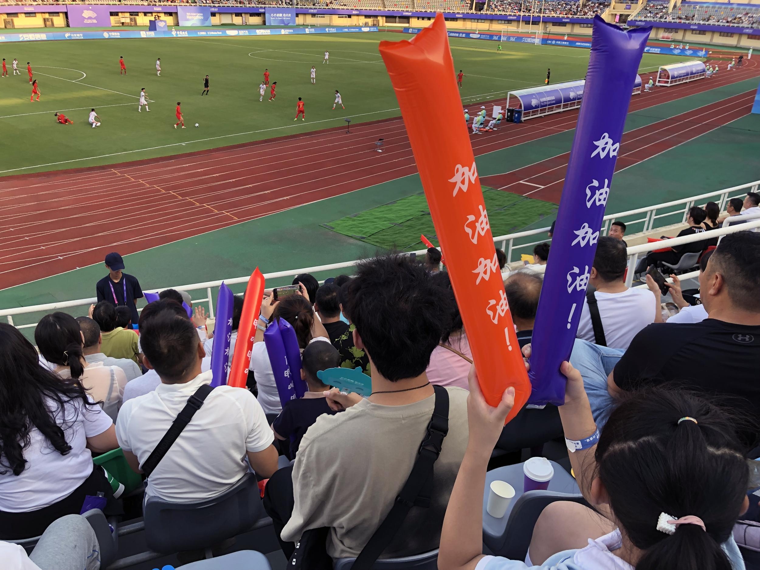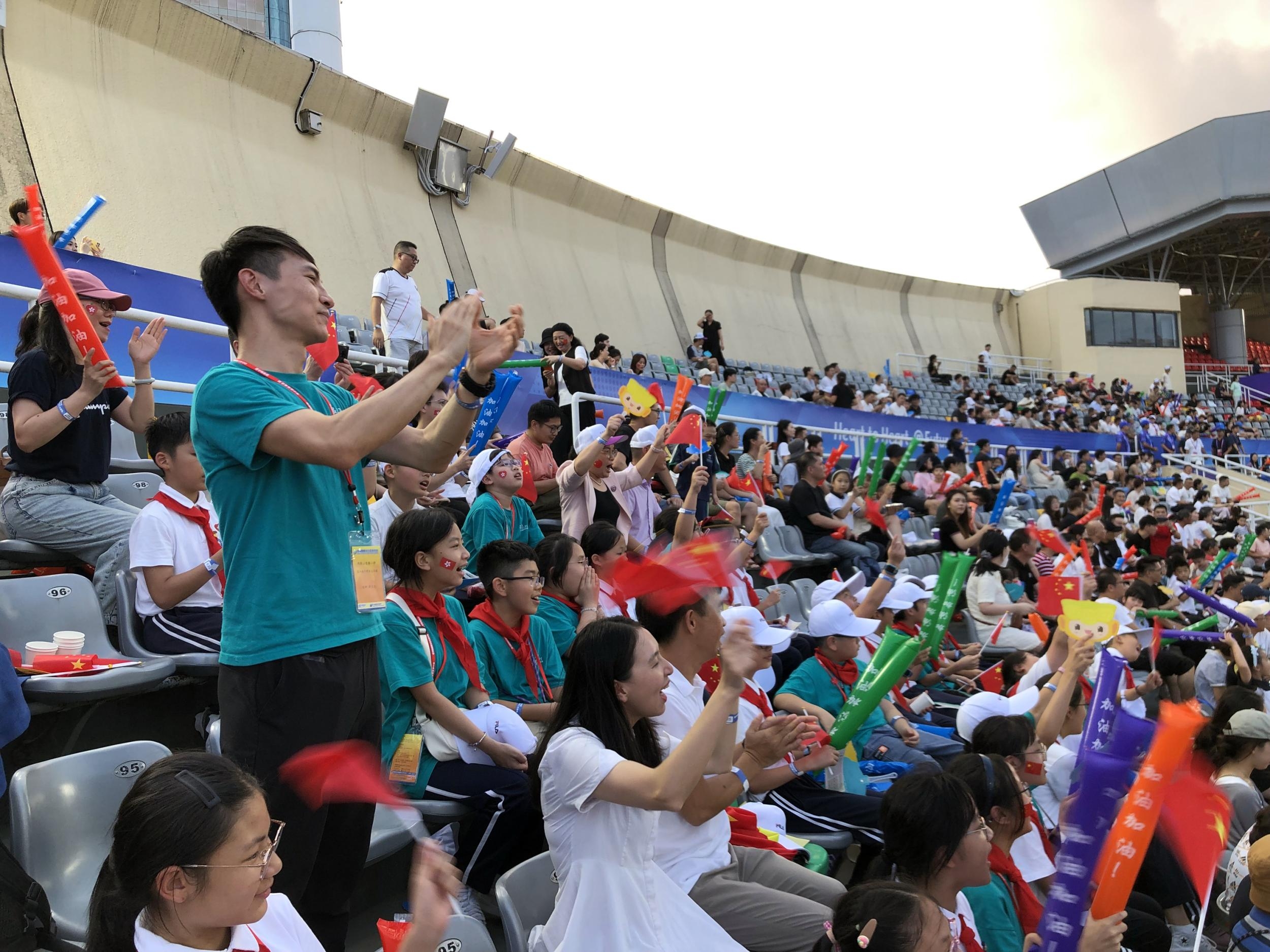 “加油!加油!”9月25日下午,杭州第19届亚运会女足小组赛中国香港VS缅甸的比赛中,一支由温州小学生与香港小学生组成的观赛团,成为全场瞩目的焦点。孩子们一句句稚嫩的加油声回荡在温州体育中心,让炎热的午后赛场多了一丝凉意。