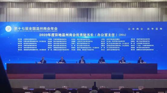 通过对全国268家地级市以上异地温州商会评选后,表彰大会授予30家“2020年度先进异地温州商会”,授予10家“2020年度异地温州商会先进党组织”,授予30名“2020年度异地温州商会优秀秘书长(办公室主任)”等多项荣誉称号,廊坊市温州商会常务副会长兼秘书长 叶寒冰 ,荣获二0二0年度异地温州商会优秀秘书长荣誉称号。
