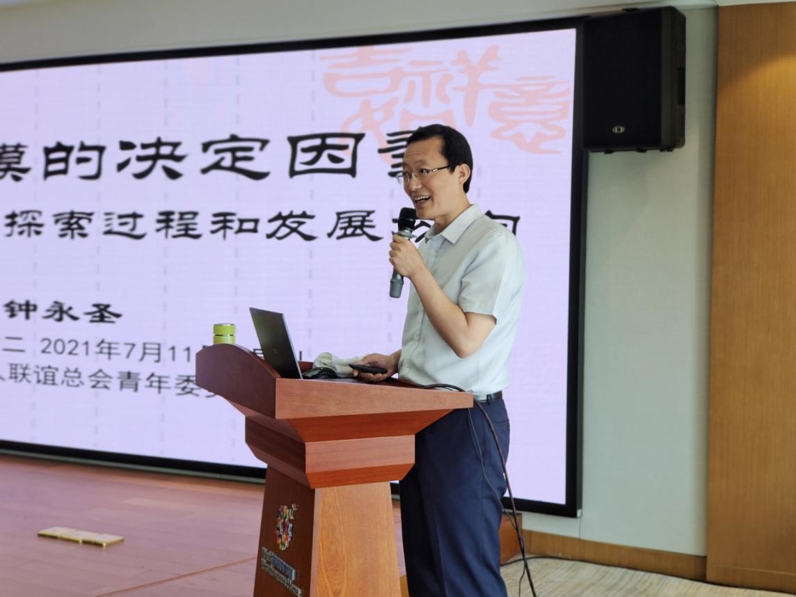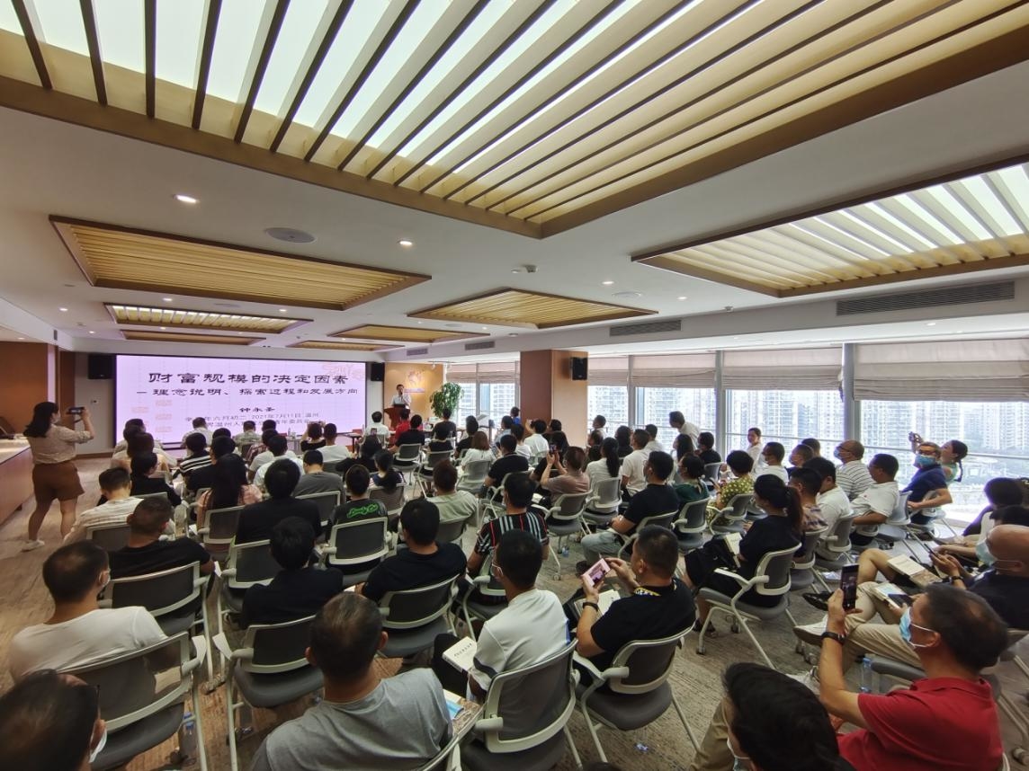 7月11日下午,温州市新生代企业家联谊会与世界温州人联谊总会青年委员会联合主办瓯talk讲座活动,邀请经济学博士钟永圣在世界温州人家园17层瓯说厅带来题为《道德决定财富的规模》的互动分享。温州市商务局副局长楼了凡,温州市冠盛汽车零部件集团股份有限公司董事长周家儒,温州市新生代企业家联谊会张鹏飞等出席本次活动。