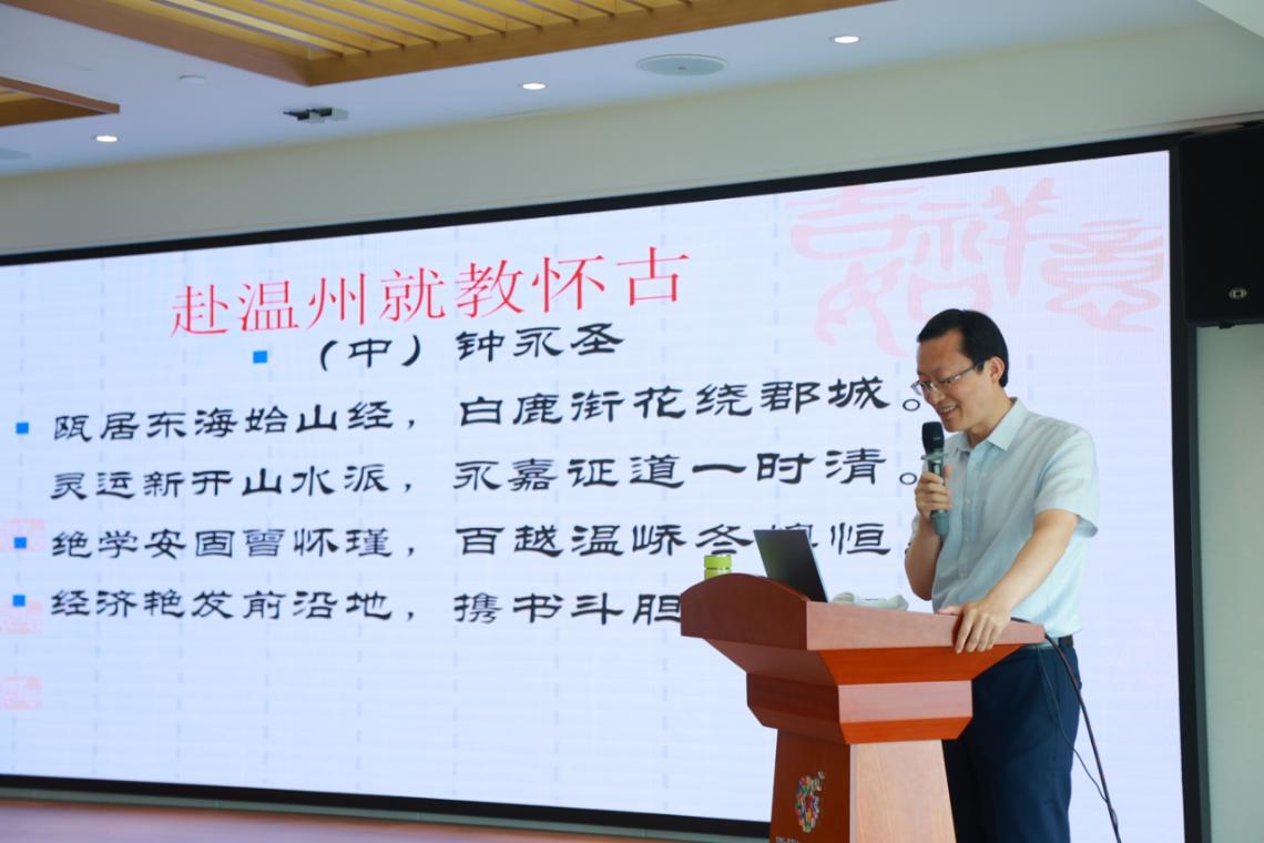 分享的开场,钟永圣博士就用一首《赴温州就教怀古》表达了他对温州及温州文化的理解,他直言,出生于温州的国学大师南怀瑾对他的理论体系有着重要的影响。