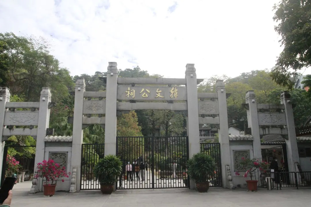 韩文公祠坐落在潮州韩江东岸笔架山麓,建于宋朝,是我国现存的历史最久远、保存最完整的纪念唐代大文学家韩愈的专祠。韩文公词倚山临水,古朴清幽,庄重肃穆。正门以韩愈接地气的两句诗"业精于勤荒于嬉,行成于思毁于随",来建造闻名。阁前是韩愈石雕头像,阁内陈列着文物。