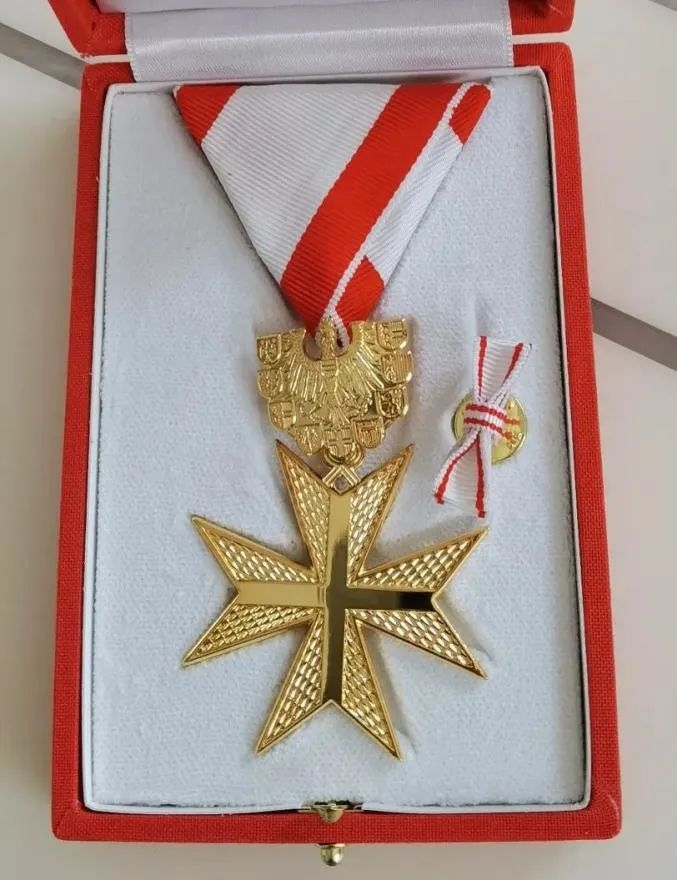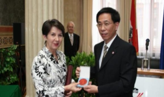 “奥地利共和国金质功勋勋章”由奥地利联邦总统决定颁发,专门用于表彰对奥地利做出卓越贡献的人士。今年是中奥建交五十周年,奥方向长期以来为奥中友好作出贡献的各界人士进行表彰,奥中友协华人委员会多名成员受到嘉奖,张维庆被授予共和国金质功勋勋章。