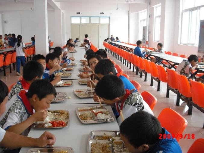 水墨小学学生在新建的学校食堂用餐