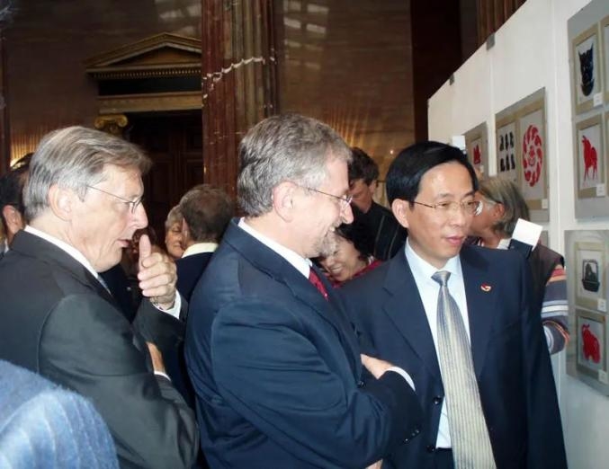 奥地利总理许塞尔参观在国会大厦举办的中国民间艺术剪纸展