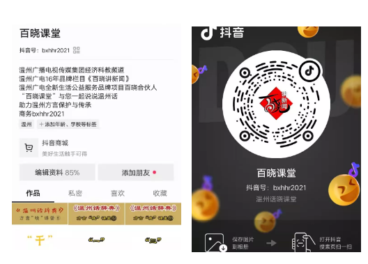 为了宣扬与普及温州文化,也为了助力温州方言与传承,我们【百晓合伙人】创立了抖音号《百晓课堂》,定期发布视频,教授大家学习正宗的温州话。