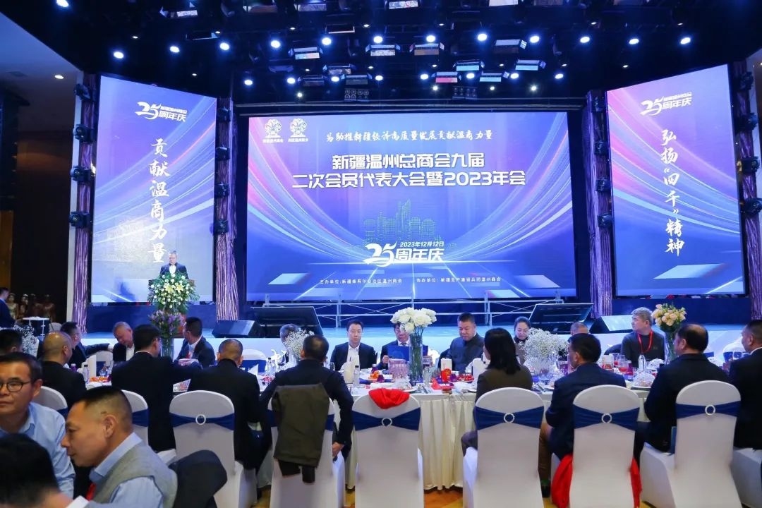 二十五载风雨兼程,二十五载春华秋实。12月12日,“为助推新疆经济高质量发展贡献温商力量”为主题的新疆温州总商会九届二次会员代表大会暨2023年会(25周年庆典大会)在乌鲁木齐隆重举行,此次大会由新疆温州总商会、兵团温州商会联合举办。