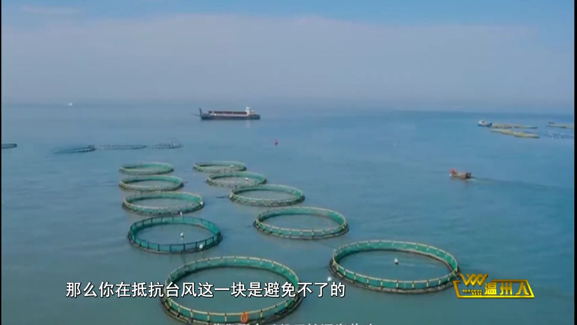 温州海派渔业有限公司董事长 林端萍:你要开始大规模去养的话,不能像之前一样,我们用传统网箱,一个抗风能力,然后这些抗风能力,这些传网箱餐其实是我不好的,然后所以我就开始跟我的母校浙江海洋大学,我们有抗深水抗风浪网箱,其实是由挪威的一个养殖三文鱼的技术引进,然后去开始做在南麂岛做一个抗风浪网箱的做一个实验,你规模要扩大,那么你在抵抗台风这一块是避免不了的,一定要去做一个技术改进的,包括网我们也从原先的一个尼龙网改成了一个高分子结构的网,然后这两块以外,养殖设施也去做一个改造。