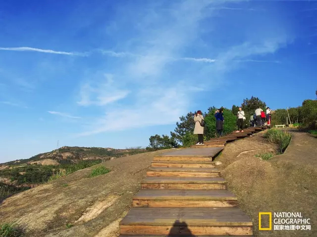 沿着木栈道往上走。路修得非常好,这里是瓯海出名的健身步道,很多当地居民在下午时分都会开车前来爬山,权当锻炼。一路上山,不管是超过我的,还是对面走来的,一眼望去,都能明显能看出来是此类人。