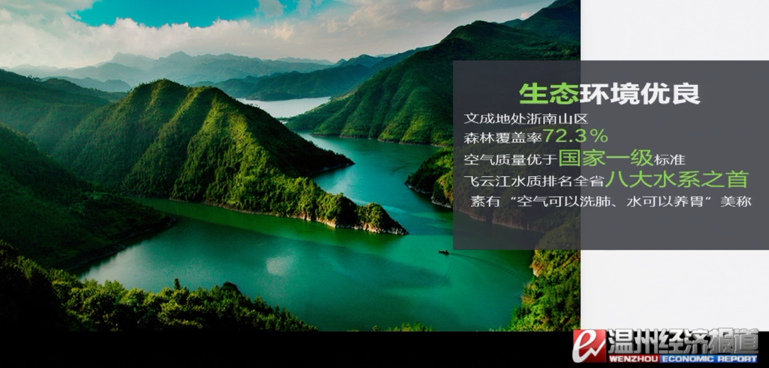 随着这几年交通的改善,可以把文成的区委条件由原来的末端,变成为浙南的交通枢纽,第二个文成有很好的山水资源我们有很多的4A级景区,这些自然景观对文成旅游起到大的支撑作用,第三个我们有很大的侨商资源,我们是浙江省第二大侨乡,接下去总的方向也是如何去吸引侨资,打好侨牌。