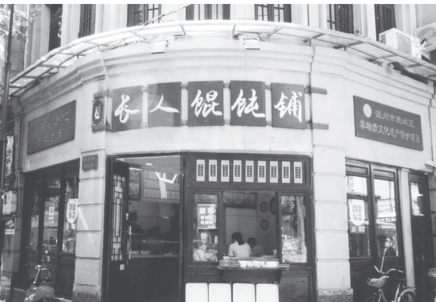 【长人馄饨店】长人馄饨始于1930年。最早是乐清人陈立标挑着担子叫卖进温州的,因陈立标个子很高,他的馄饨人称“长人馄饨”。长人馄饨皮薄馅多,盖料丰富,汤清味鲜。