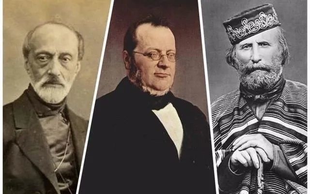 意大利建国三杰,左起为马志尼、加富尔、加里波第。