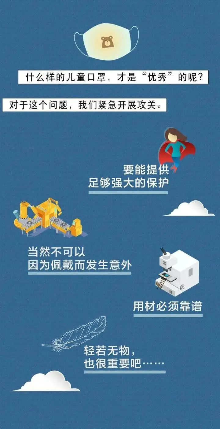 而近日由中国产业用纺织品行业协会牵头起草制定的《民用卫生口罩》团体标准(以下简称“团体标准”)也对儿童口罩进行了分类和规定,为生产监管提供依据。