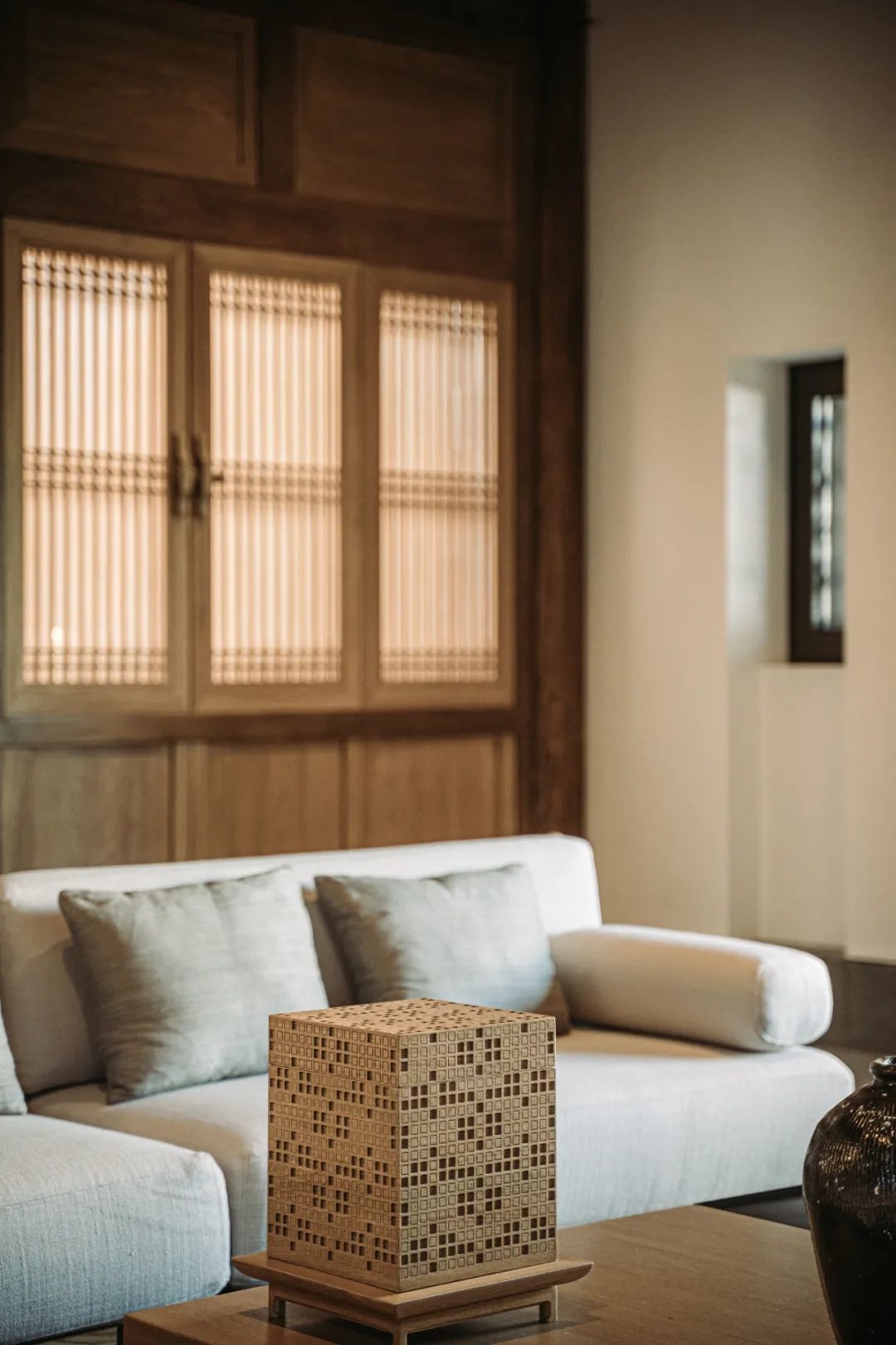 在不破坏墙体框架结构的同时,Kerry Hill 设计团队借助木色的室内环境或屏风,引入柔和宁静的光线。