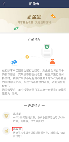 第一,民生银行薪盈宝公然宣传高收益。基金君打开薪盈宝页面发现,薪盈宝介绍主打两大卖点:一是高流动,一年365天随时支取,账户余额不足也可以在ATM取款;二是高收益,基金销售相关的监管条例明确规定不可宣传高收益,曾有基金销售平台在宣传资料中写有"最高可享8.8%年化收益"的文案而被罚。民生银行简单直白宣传高收益,且未做任何风险提示,极有可能误导部分客户。