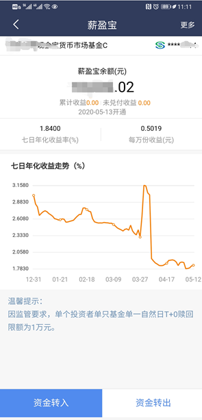 第三为体验问题,不涉及与监管精神相背的地方。打开薪盈宝持仓后,基金君想做赎回操作。点击“资金转出”按钮后,却进入了转账流程页面。由于首次打开薪盈宝未截图,下方截图为重新体验流程后做的截图。