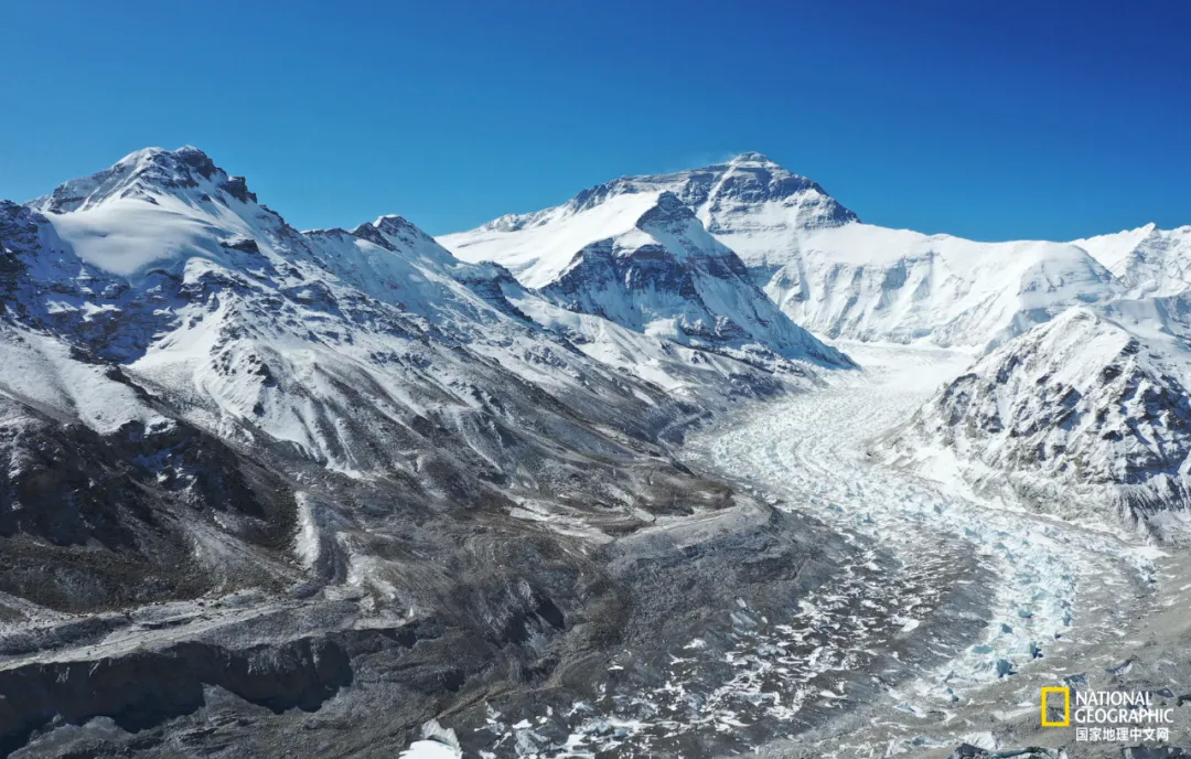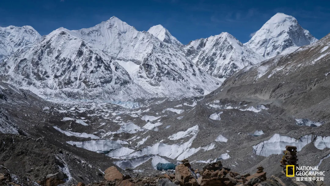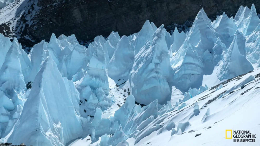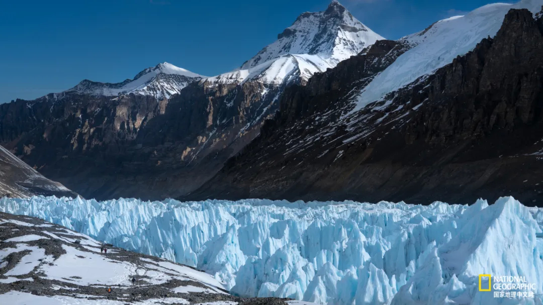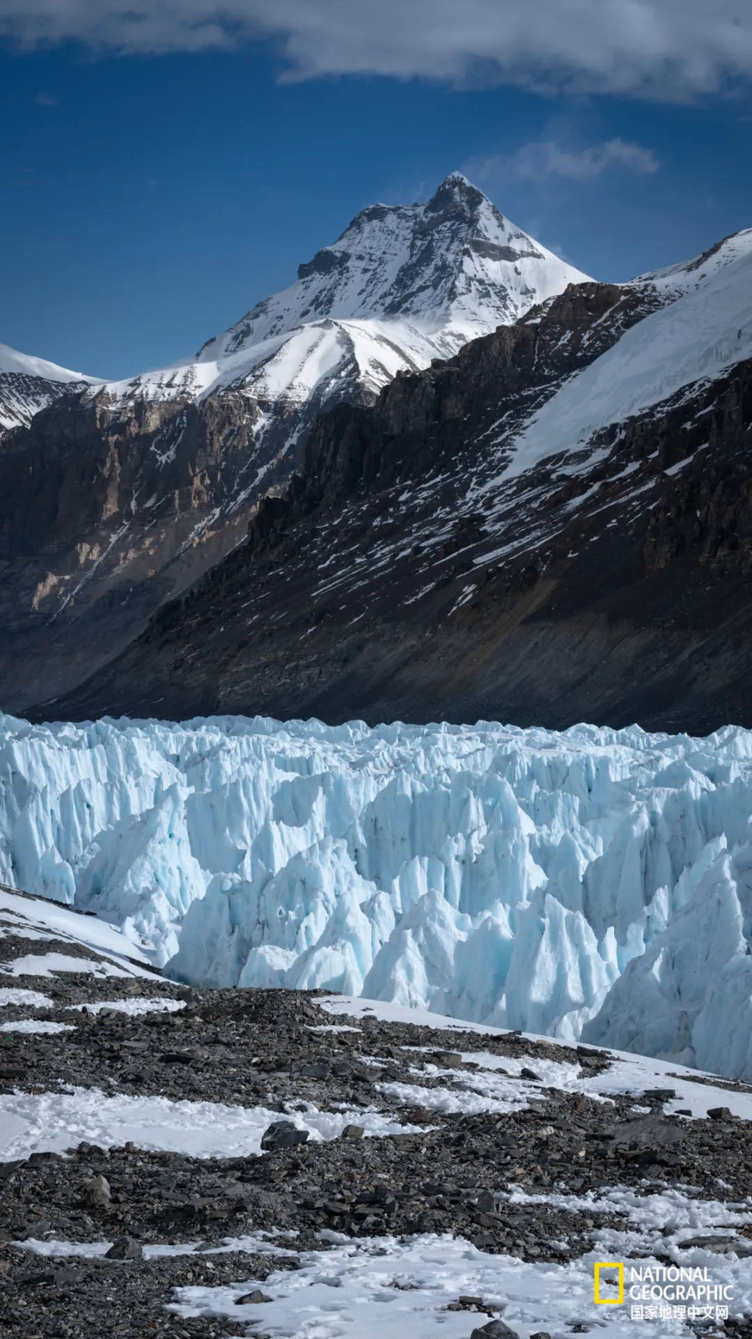 蓝色的绒布冰川,绒布冰川发育在珠峰脚下5300—6500米的区域,分为东绒布冰川和西绒布冰川。