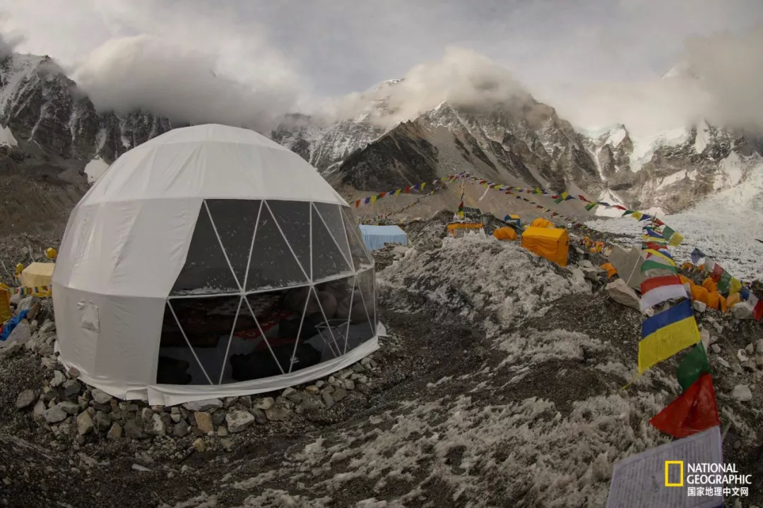 去年,某登山公司在大本营搭起巨大的圆顶帐篷。