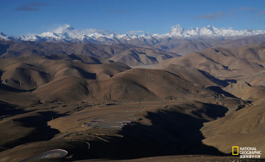 加乌拉山口观景平台,前往珠穆朗玛峰大本营途中的一个垭口,能够观赏到5座8000米级的雪山,从左到右分别为马卡鲁、洛子峰、珠穆朗玛峰、卓奥友峰、希夏邦马峰。