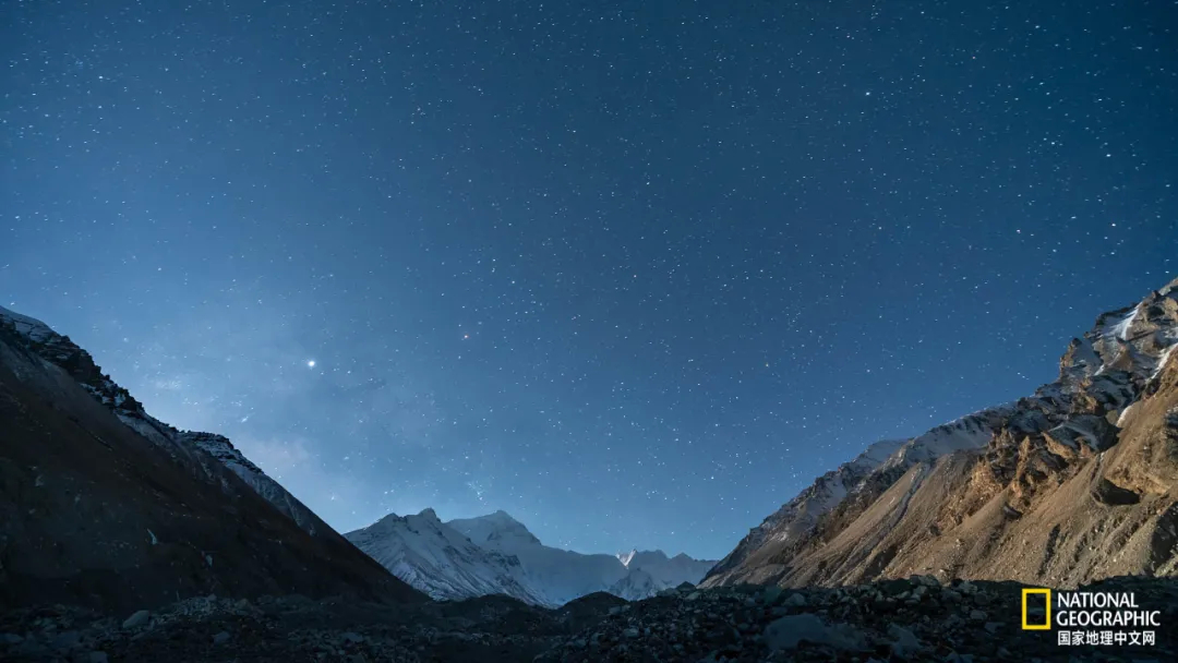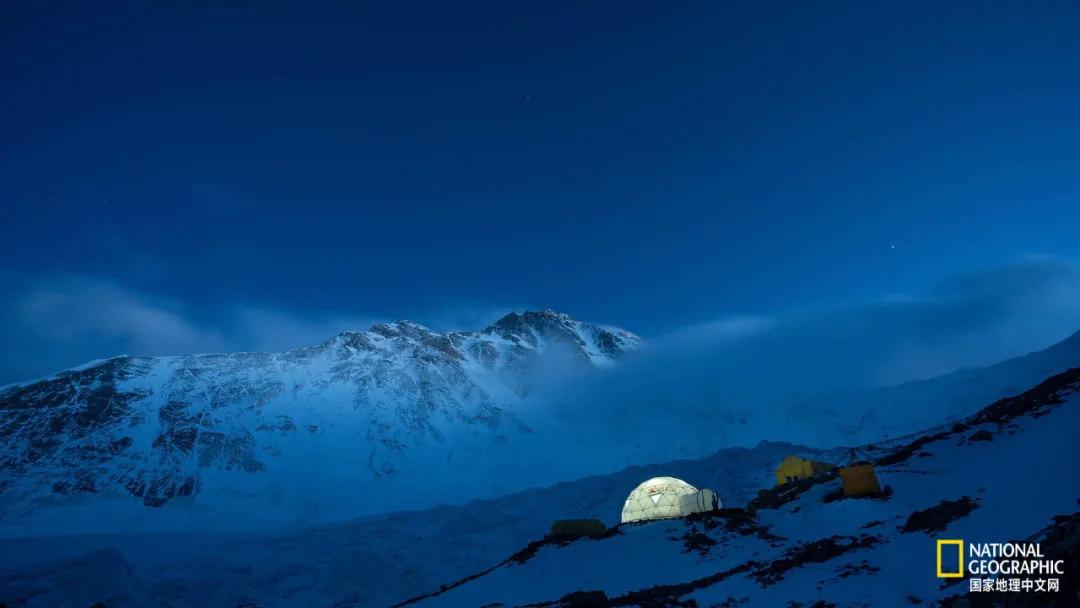 5800米的过渡营地,紧靠着蓝色的绒布冰川。