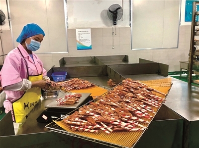 “公司生意好,这个月的工资涨了600块咧!”顾不上抬头,包装间工人陈金女边忙边说。她手上的宠物咬胶,是美国3800多家沃尔玛超市的热门货,5月份的采购量高达50万包。