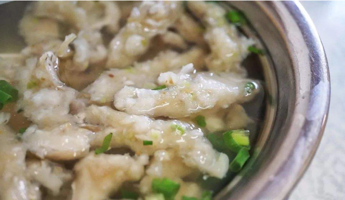 龙头鱼,温州俗称水潺。这种鱼通体雪白,浑身只有一条软骨。最经典的做法一定是红烧水潺。把水潺去头,去尾,去内脏,然后切段。辅以料酒、酱油炒制而成。一放进嘴就像豆腐一样融化,绝对是一场超值的味蕾盛宴!水潺味鲜,不论是椒盐,还是剁椒,都是很常见的做法。