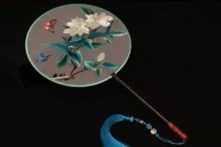 瓯绣团扇采取双面绣的技法制作,两面均可观赏,呈现相同瓯绣图案与技法。