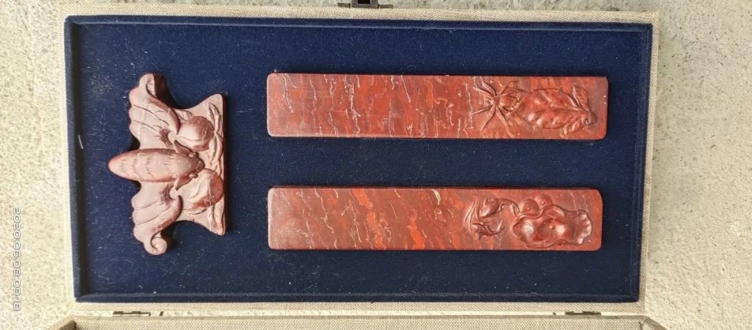该镇纸采用泰顺龟湖石雕刻而成,另加笔架。