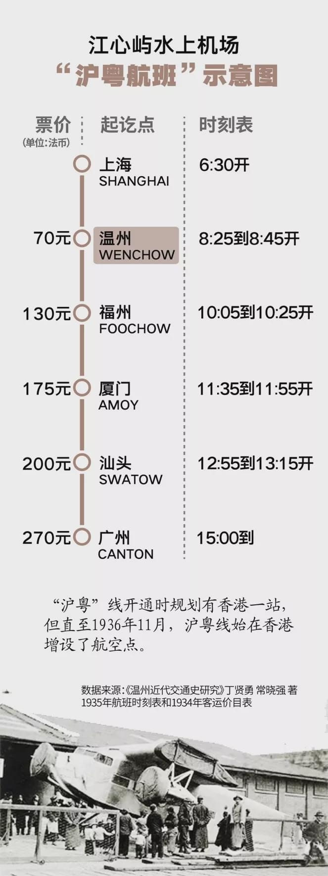 那时的飞机不是停靠在陆地跑道上,而是在瓯江水面上。温州处于当时的“沪粤航线”一个中转站,在温州可以搭乘水上飞机去广州、上海,最远至香港。