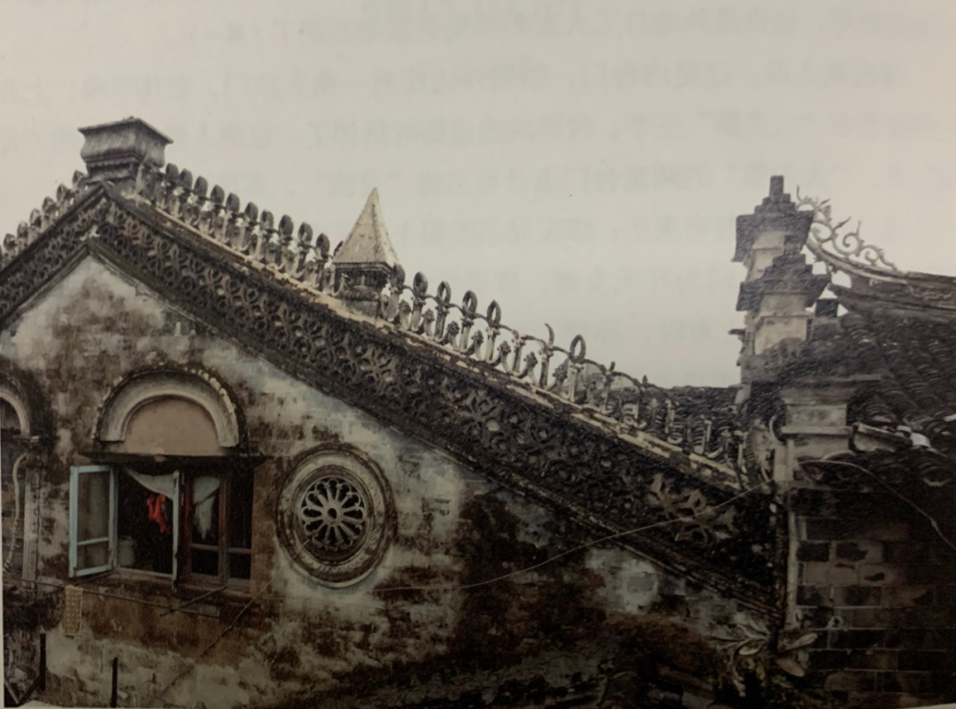 主屋两边的尽间(俗称堂头间)前,各建有三间双檐轩楼、清水脊,脊头饰镂空飞鸟图案,砌徽式风火马头墙。在浙南民居风格中,融进徽派建筑元素和格调,反映屋主兼收并蓄的思想内涵。