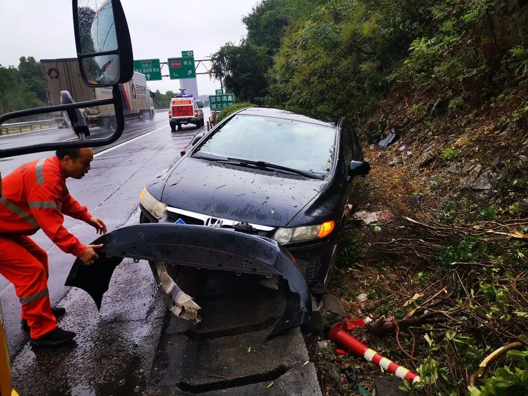 【温州】雨天车辆打滑撞上高速公路边坡 驾驶员这个动作捡回一条命