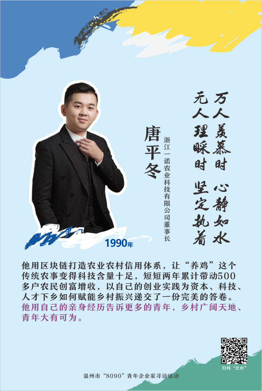 10月6日起,温州市“8090”青年企业家寻访活动开启比心“8090”通道,50位优秀青年企业家全城首秀、全网展播,带着他(她)们的创业宣言,用同龄人的故事感召青年人。短短24小时内,12万+人次的网友进入通道、为优秀的“8090”后点赞喝彩!