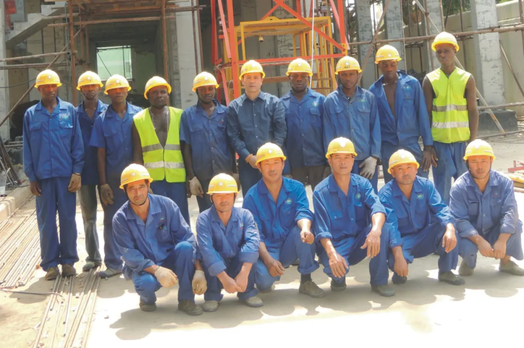 易会场(第二排左六)视察易得利(安哥拉)建筑工程公司在建罗安达医院项目