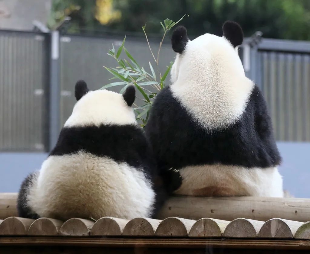 熊猫母女憨憨的背影