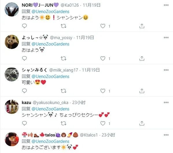 另外,动物园的推特上面每天也会更新香香的动态,每条动态下面都有很多网友“吸熊猫” 。
