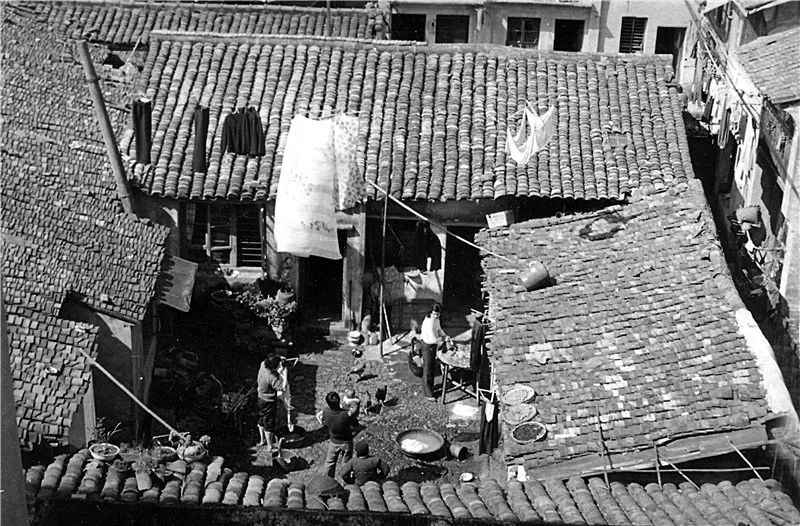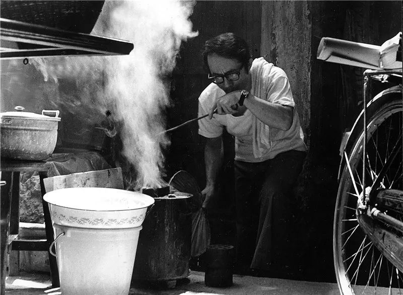 20世纪80年代,住房拥挤,一家七八口人住三四十平方米的房子是常事,不少住户会将煤球炉放置在公共通道上。图为1978年,温州人民东路2号的一户人家,在用煤球炉做饭。王曙 摄