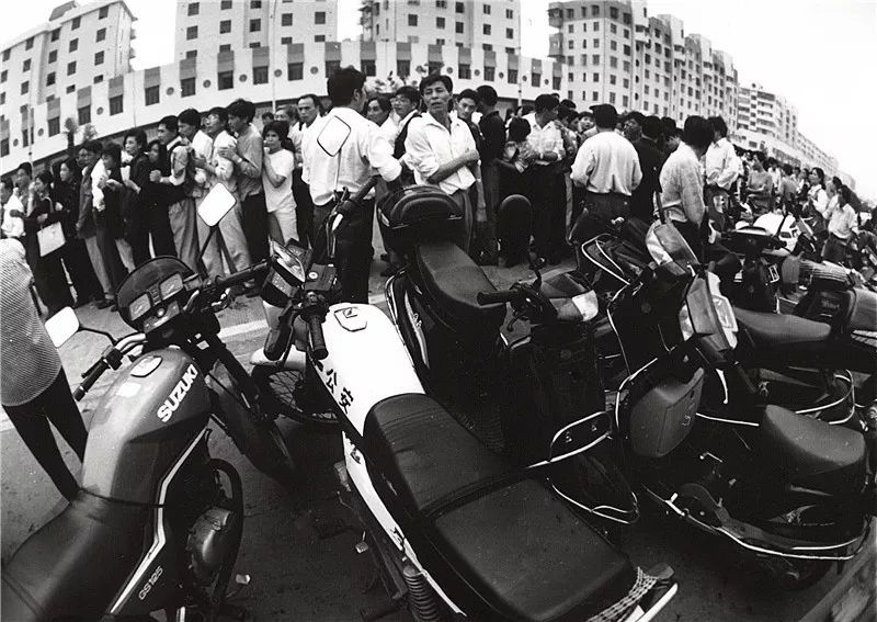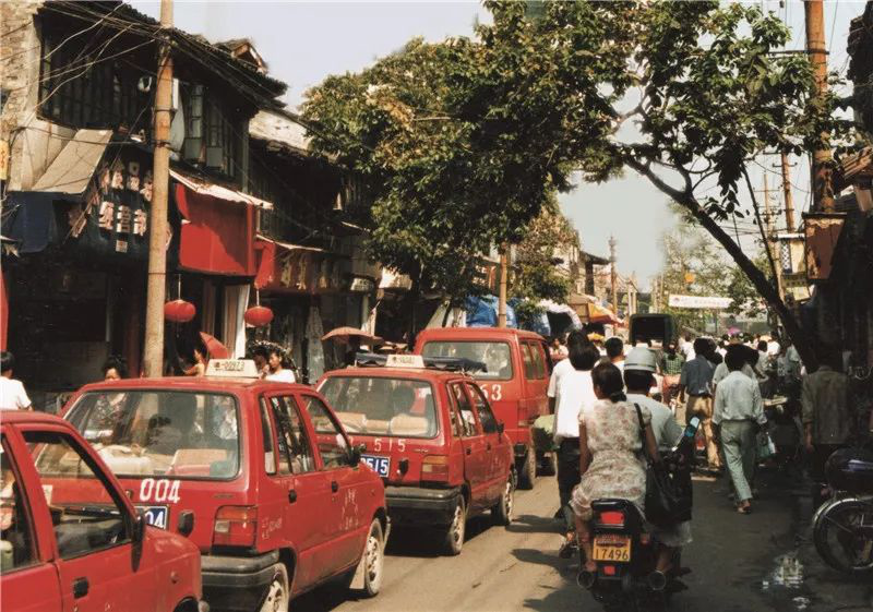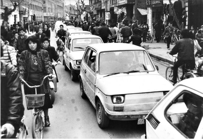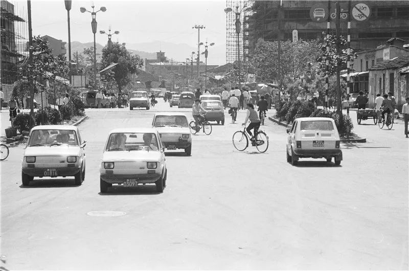 1988年,温州街上过往的菲亚特排起长蛇阵 朱保钢 摄