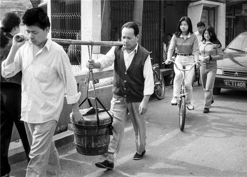20世纪80年代末,城里居民已用上煤气灶,但老房没电梯,人们还得手抬肩扛把煤气罐搬到家 王曙 摄