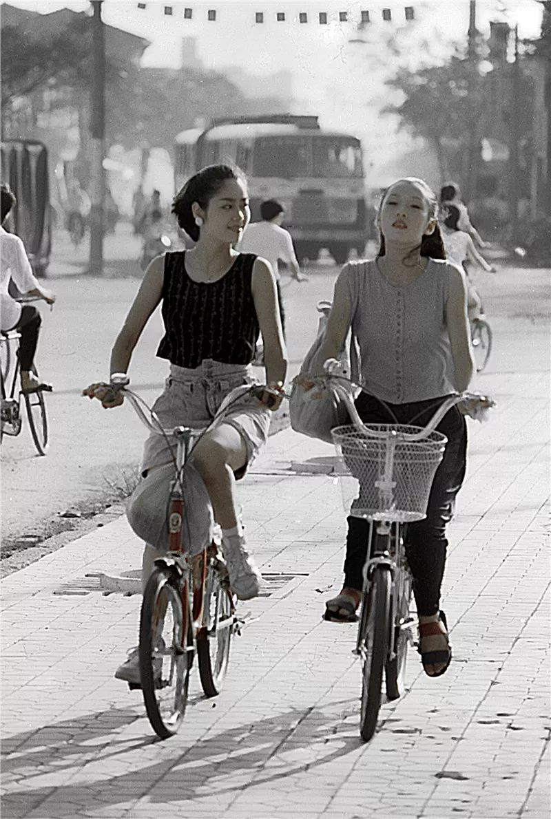 1986年,骑自行车的时髦女郎是街头的一道风景 王曙 摄