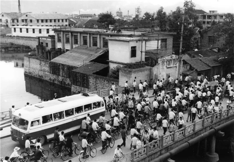1982年的飞霞桥,推车行走的人们占满了桥面 孙守庄 摄