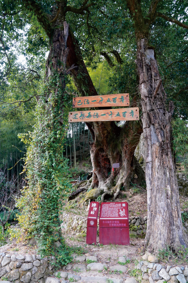 国家一级珍稀保护树种红豆杉,枫香、栲树、柳杉、马尾松、甜槠、木荷……如珍珠般撒落在山村的绵延山岭。山林间、村道边、溪流旁,“百岁老树”在此随处可见。