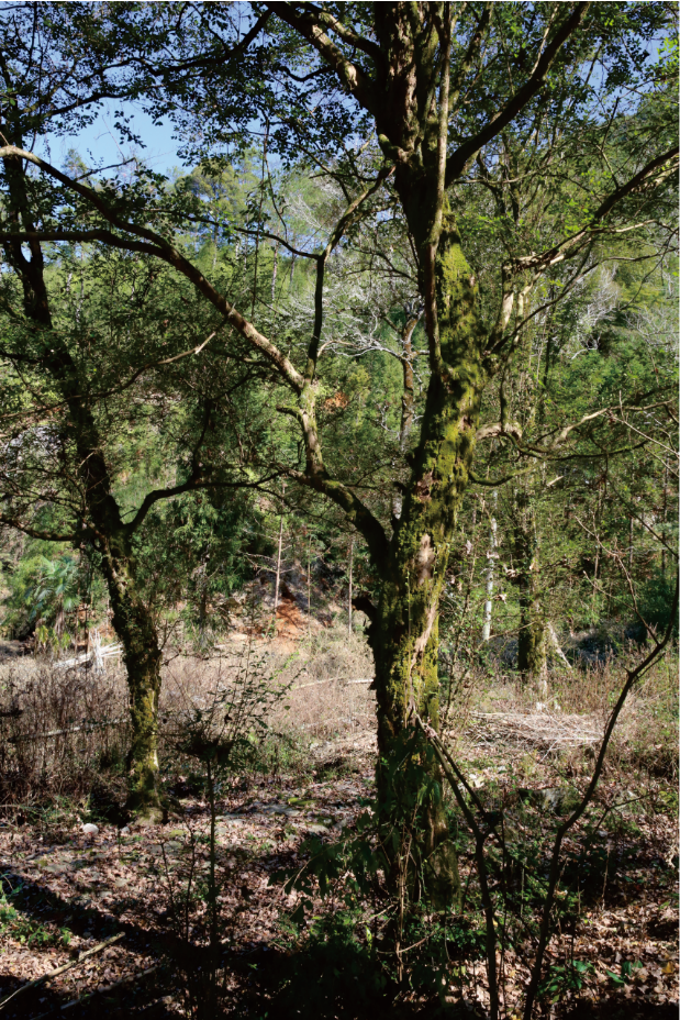 “苦槠王”的枝干中空又不失活力,巨大的树冠犹如撑天的巨伞,与古道在此相守千年。一千五百年来,它们为行走古道的村民遮风挡雨,也让人不得不赞叹生命存在的沧桑和顽强。