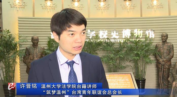 温州大学法学院台籍讲师、“筑梦温州”台湾青年联谊会总会长 许晋铭:为了帮助更多的台湾青年认识祖国大陆这片美丽的江山,以及大陆面向台湾青年创业就业的一些鼓励政策,我们带着大家到温州进行参访交流。温州打造全域“台青筑梦家园”,推出了很多不同的政策,以及开设出很多给台湾青年实习、就业的岗位,这次让台湾同学们来温州,看看这里的环境,他们暑假或者毕业后可以选择来温州实习、就业。