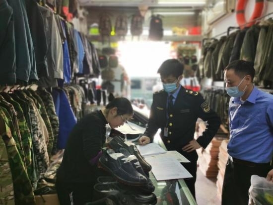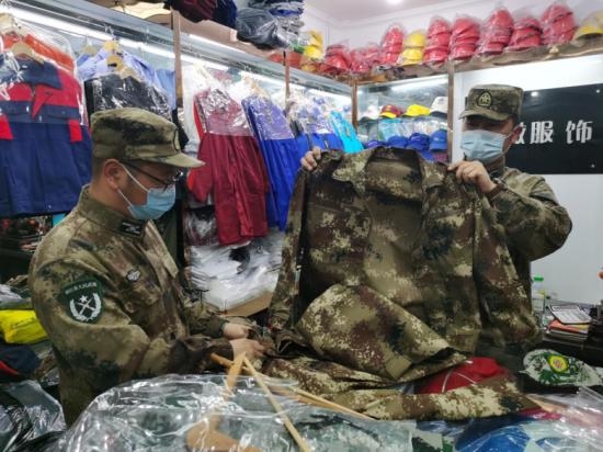 近日,龙港市人武部联合龙港市公安局、龙港市场监督管理局等部门,开展“守护戎装”专项行动,深入辖区多家劳保用品点、户外运动服装店,检查军队服装,以维护军队形象和荣誉。