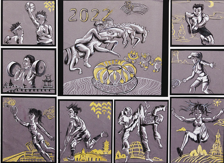 自2022年3月开始筹备,向海内外少儿共征集到儿童画作品4047件。经过初选共有1000件作品进入复评,经专家评委评议,评选出一等奖8件、二等奖18件、三等奖25件,入展作品184件。这些作品汇聚了海内外少年儿童对亚运会和龙舟运动的满满祝福,积极向上,丰富多彩,画风各异,笔意纵横、充满童趣。