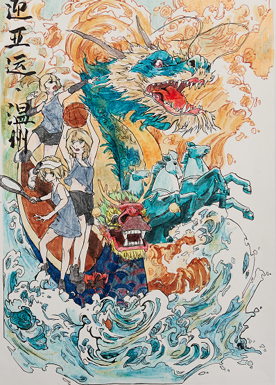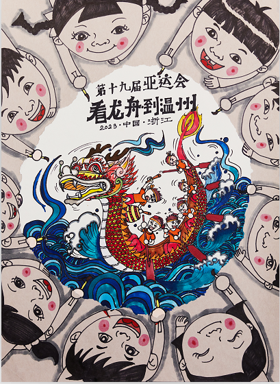 东亚文化之都•温州是杭州第19届亚运会协办城市,作为亚运会分赛区将迎来龙舟赛事。为激发海内外少年儿童迎亚运热情,打造儿童友好城市。温州市第19届亚运会工作领导小组办公室、温州市文化广电旅游局、温州市体育局、温州市政府外事办公室、温州市教育局、瓯海区政府、温州日报报业集团、温州广播电视传媒集团特联合主办“迎亚运·绘龙舟”海内外少儿绘画大赛。