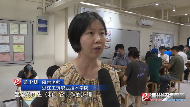 浙江工贸职业技术学院瓯窑老师 吴少珺:让他们了解瓯窑文化,瓯窑的历史和制作的流程,希望他们今后在自己从事艺术创作和设计上面,能够把我们传统的文化融合进去,成为今后艺术创作的养分。