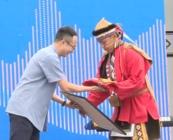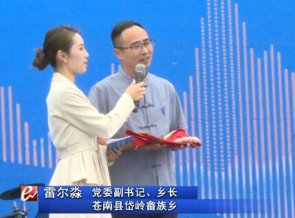 苍南县岱岭畲族乡党委副书记、乡长 雷尔淼:此时此刻非常荣幸收到阿里山乡代表所赠的这份珍贵的礼物,我希望我们两乡之间像赠送的礼物一样,继续加强交流合作,共同推动共赢发展。