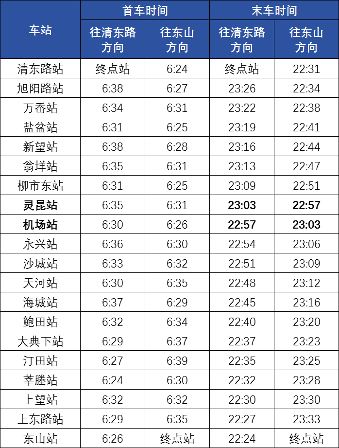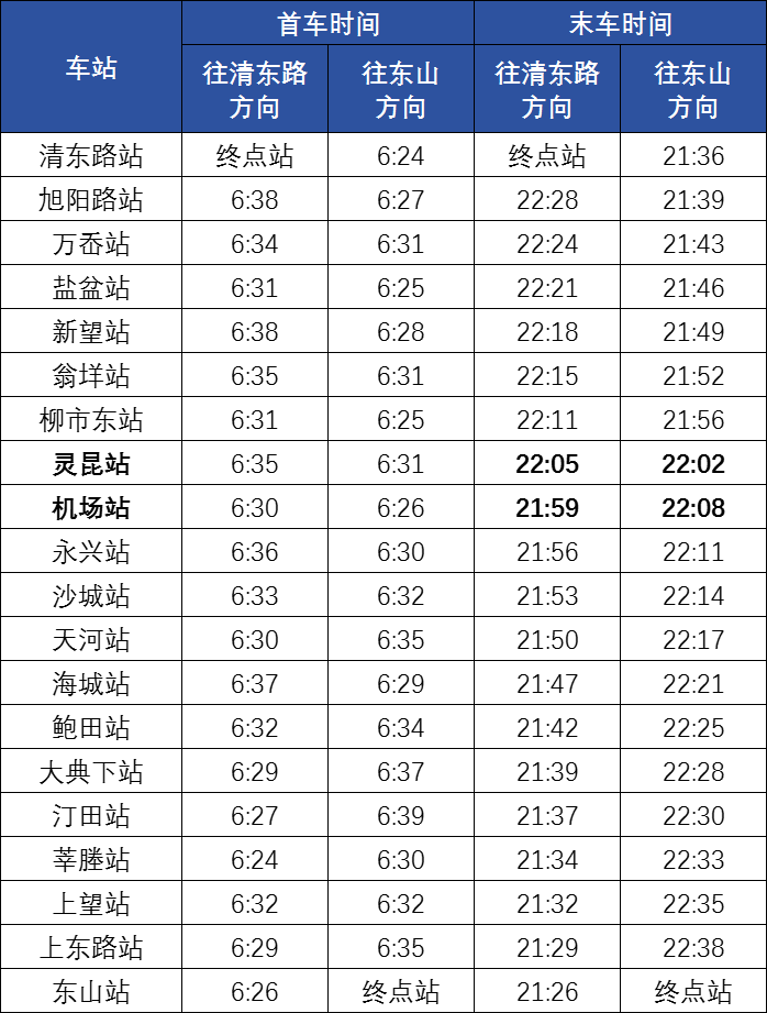 各站首末班车时间
