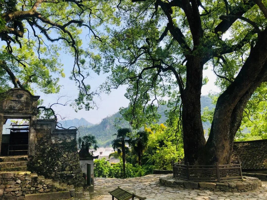 双樟巨大的树冠蓊蓊郁郁能覆盖了民居和亭子,有着一股诗情画意的优雅。古村口落山风从古老的樟树竹林中吹过;蜿蜒盘旋的山林古道;院子中不知名的小花,还有墙壁上那些年代久远的古典璧画等。