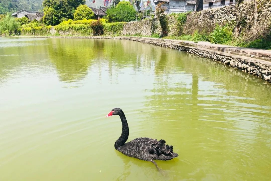 屿北始建于唐朝,有着千年历史。从南门进村,古老的石板桥,叶子尚未金黄的银杏树,一只黑天鹅徜徉在护寨河中,特别美。